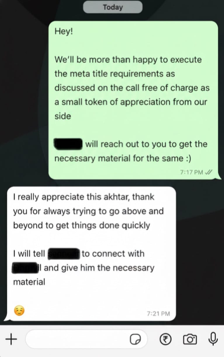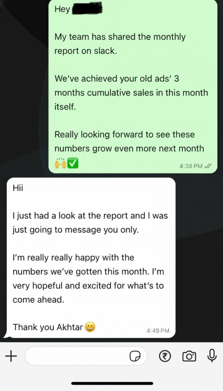Our projects are built around performance and ROI, so pricing depends on your goals and scope. Most high-performance builds start from ₹1L+ and scale based on complexity. If that aligns, we can discuss what would make the most sense for your brand.