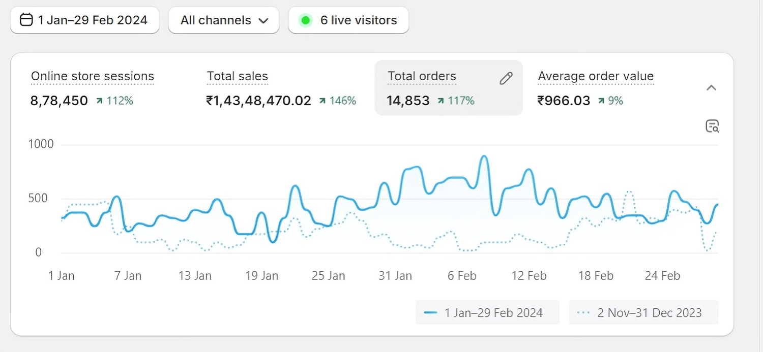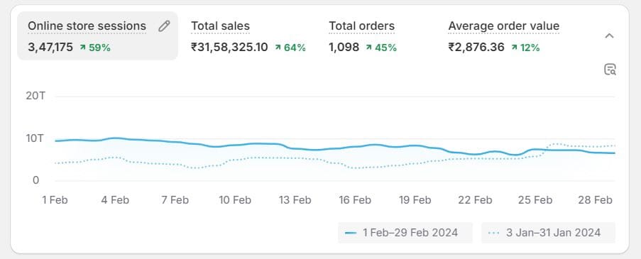 Over a ~60-day period, we helped scale their store to ₹31L+ (~$37K+) in total tracked revenue, while significantly improving key performance metrics.